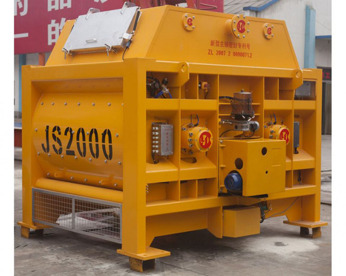 JS2000混凝土搅拌机每次出料2方,也称为2方混凝土搅拌机、两方搅拌机,JS2000搅拌机出料循环周期60S,120搅拌站主机使用的就是该主机是目前国内理想的建筑设备机型,具有自动化程度高、搅拌质量好、效率高、能耗低、噪音小、操作方便、卸料速度快、衬板及叶片使用寿命长,维修保养方便等优点。适用于各类大、中、小型预制构件厂及公路、桥梁、水利、港口、码头等工业及民用建筑工程施工部门搅拌干硬性混凝土、塑性混凝土、流动性混凝土、轻骨料混凝土和各种砂浆。