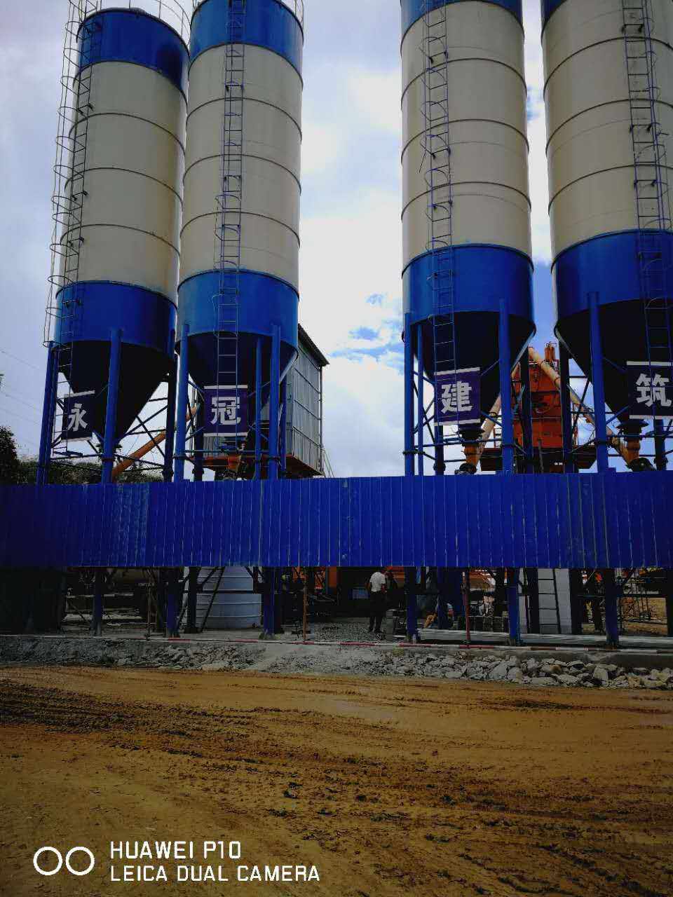 3、骨料配料采用PLD1600混凝土配料机,装载机上料,电子称计量,计量,骨料采用斜皮带机上料,搅拌罐上 方有一骨料贮存斗,可存一罐骨料备用;水泥(或粉煤灰等粉料)由水泥仓贮存,螺旋输送机输送,水泥称计量;水由水箱或蓄水池贮存,水泵供水,水称计量;液体外加剂在外加剂贮液罐中贮存经搅拌均匀后,泵送至外加剂称计量。