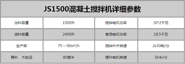 js1500混凝土搅拌机主要用于HZS75/90混凝土搅拌站主机,生产能力75/90m3/h,价格咨询:13298133255(微信同号)。